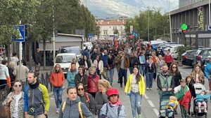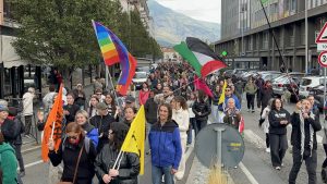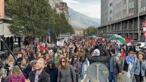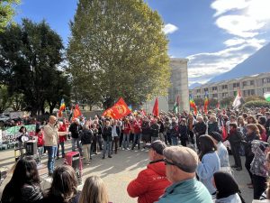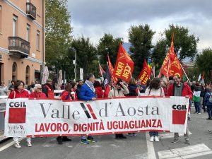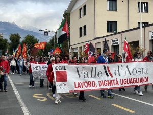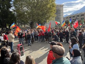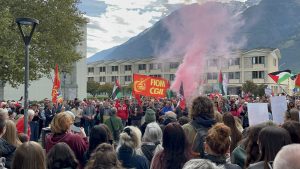Aosta: circa 2.000 persone in corteo per lo sciopero generale, dall’Arco d’Augusto a piazza Chanoux al grido di «Free Palestine»